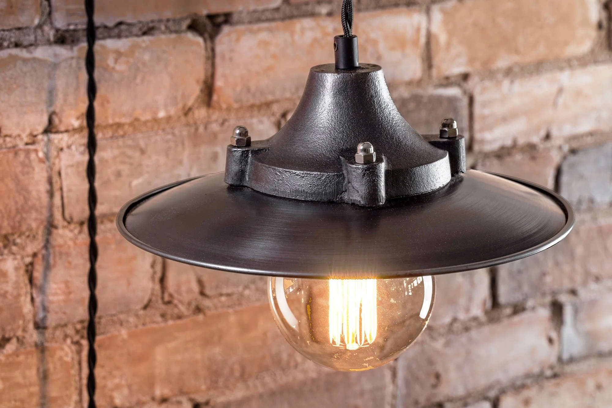 With these Industrial Pulley Lights, there’s no need to rewire anything because we created them to function wherever you mount them within 15 feet of an outlet. They’re adorned with 15 feet of your choice of cloth-covered wire, our Engine House Shade, and a beautiful antique replica plug. (basic drywall mounting screws are included)